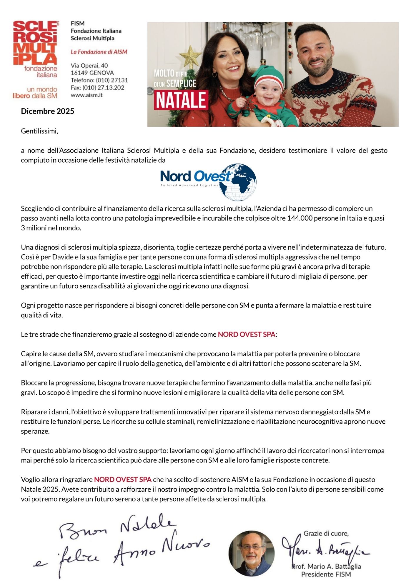 Invece di destinare il consueto budget natalizio all’acquisto di omaggi, abbiamo deciso di trasformarlo in un contributo concreto a favore di due realtà che operano ogni giorno al fianco delle persone più fragili.